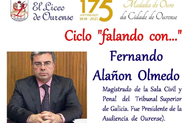 Fernando Alañon Olmedo participará en una charla sobre justicia en el Liceo de Ourense