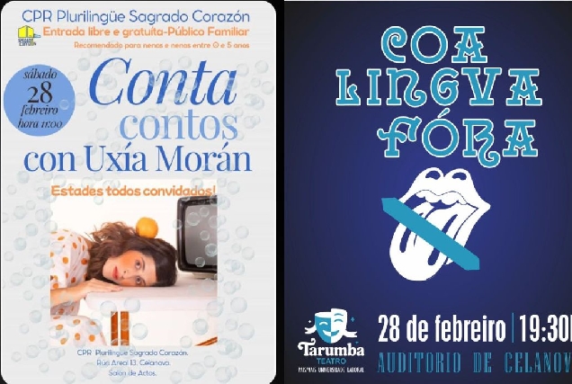 Por la mañana, el CPR Sagrado Corazón acogerá un cuentacuentos con Uxía Morán y, por la tarde, el Auditorio Municipal acogerá la representación de Coa lingua fóra
