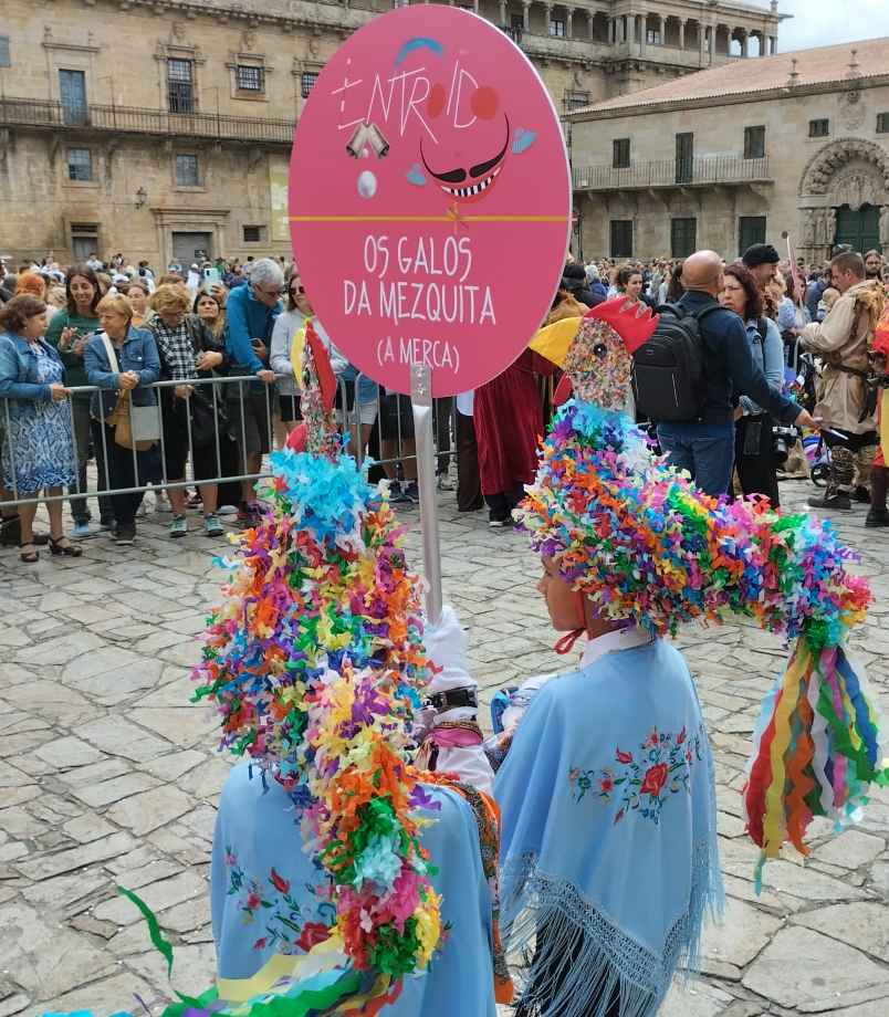 Rosa Pérez, portavoz de la Asociación Galos de A Mezquita, creada en el año 2014, explica que después de una época oscura en la que esta tradición quedó relegada al olvido, en los años 90 un grupo de vecinos decidió volver a sacar los Galos a las calles, aunque su iniciativa no prosperó. Sin embargo, ya en los 2000, Ramón Borrajo y la propia Rosa decidieron volver a salir vestidos de Galo. Ella, de hecho, fue la primera mujer adulta en hacerlo, y que la tradición imponía que este traje se destinaba solo a hombres solteros y niños.