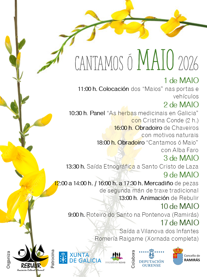 A Asociación Cultural Rebulir impulsa unha nova edición do programa “Cantamos ó Maio”, unha iniciativa coa que busca reforzar a recuperación e posta en valor das tradicións vinculadas aos Maios na comarca da Baixa Limia–Celanova.