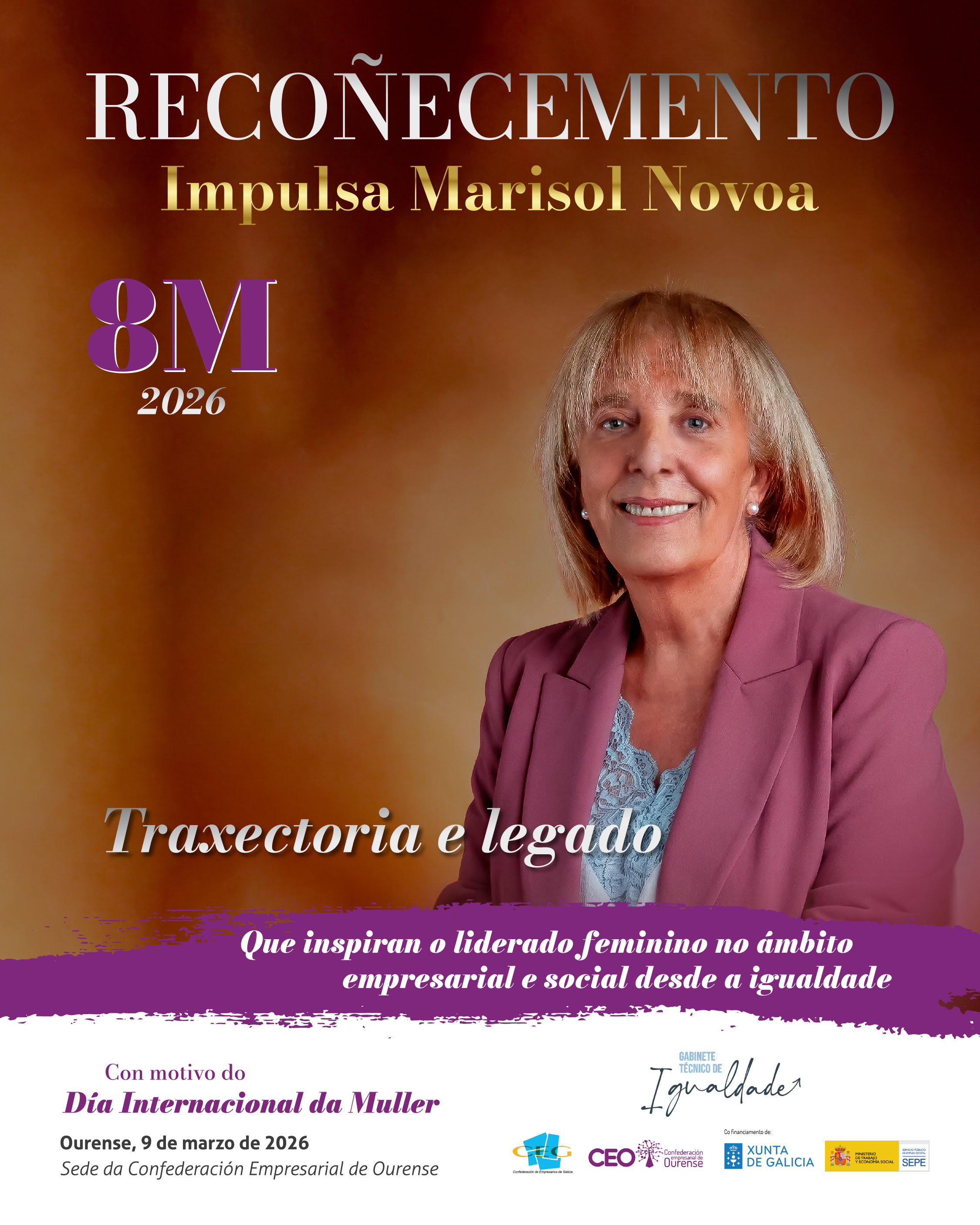 A Confederación Empresarial de Ourense (CEO) organiza un acto conmemorativo con motivo do Día Internacional da Muller, no que se presentará oficialmente o Recoñecemento Impulsa Marisol Novoa.