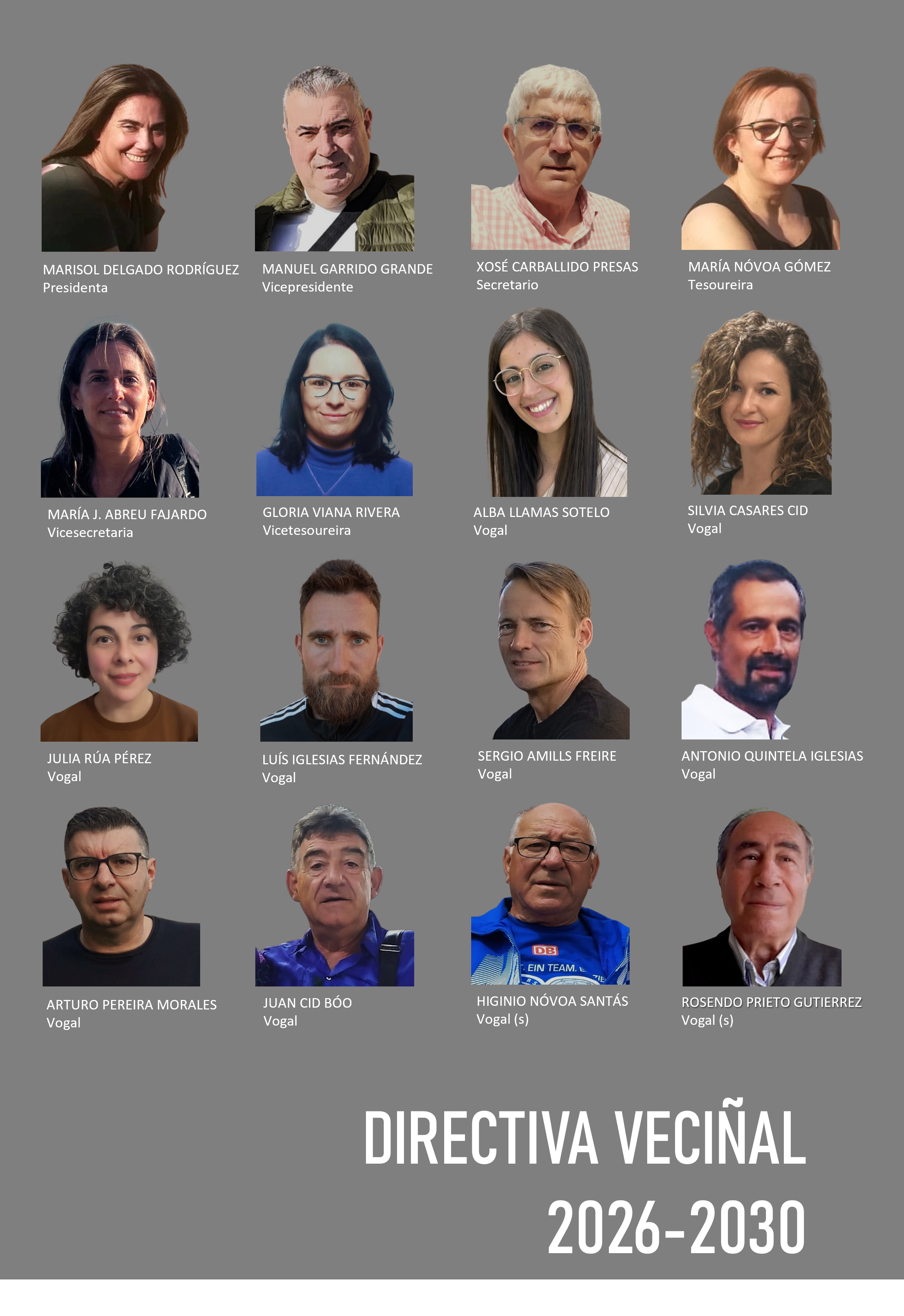 A verdade é que é unha responsabilidade moi grande, así que con algo de medo e incerteza, pero coa tranquilidade de contar cun equipo fantástico que combina experiencia, con xente que leva xa anos, e a ilusión das persoas que se incorporaron novas. No meu caso, por exemplo, levo anos na asociación, pero asumir a presidencia é un reto moi importante, é un cargo que pesa, por iso as funcións van estar repartidas, será un traballo conxunto. Por exemplo, o vicepresidente, Manuel Garrido, encargarase das xestións máis institucionais e políticas, e o secretario, Xosé Carballido, tamén levará todo o tema do papeleo. Insisto, o equipo combina experiencia e renovación, con xente que achega ilusión, polo que empezamos con moitas ganas e compromiso. Creo que é fundamental que haxa relevo e que entre xente nova con novas ideas e puntos de vista.