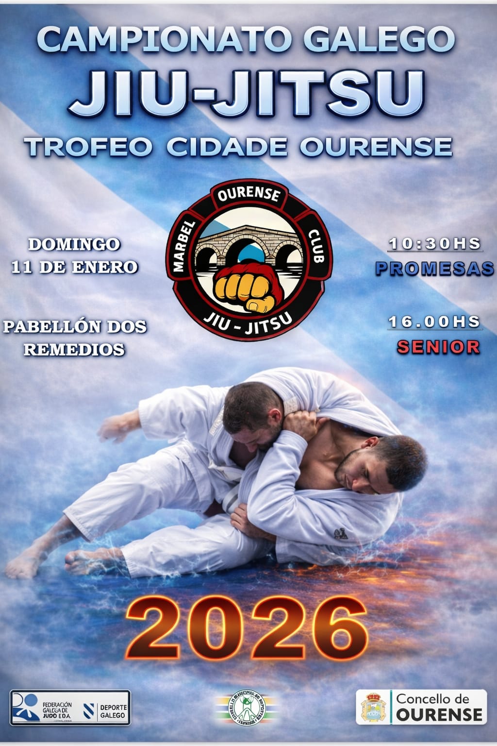 Ourense volverá ser este domingo, 11 de xaneiro, o epicentro do jiu-jitsu galego coa celebración do Campionato Xunta de Galicia Absoluto (masculino e feminino) e do Campionato Promesas, no Anexo do Pavillón dos Remedios. A cita está organizada polo departamento de Jiu-Jitsu da FGJEDA, coa colaboración e patrocinio do Concello de Ourense, a través do Consello Municipal de Deportes, e prevese a participación de arredor de 200 deportistas, con máis dun cento procedentes da provincia.