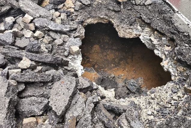 Un afundimento na calzada invade os tres carrís á altura do cruce das rúas Serra de Queixa e Monte Seixo